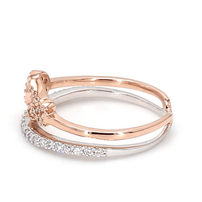 Crafted with artful bands that intertwine, this ring features a constellation of shimmering accents. Its sculptural design encapsulates a harmonious blend of sophistication and modernity, perfect for any special occasion.